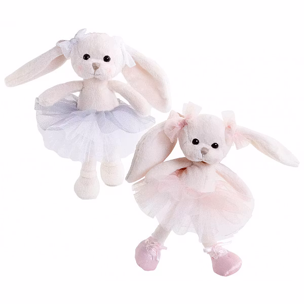 ljusgrå tyllkjol, vita dansskor och vita rosetter vid öronen. Ett underbart gosedjur.