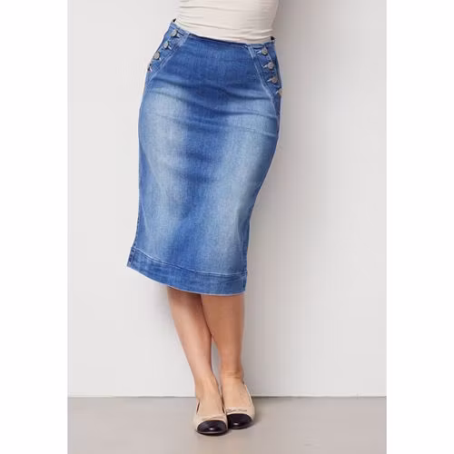 Produkten är stor i storlek, om du är osäker mellan två storlekar rekommenderar vi att du väljer den mindre.Högmidjat denimkjol med knappdetaljerOsynlig dragked