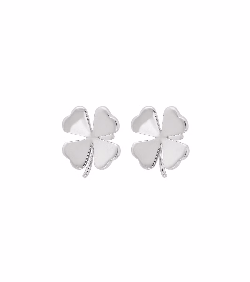 Lucky! Lyckan är ett fint fyrklöver som här med sina lätt välvda blad en liten kort stjälk. Lucky studs ses här i blankt rostfritt stål.