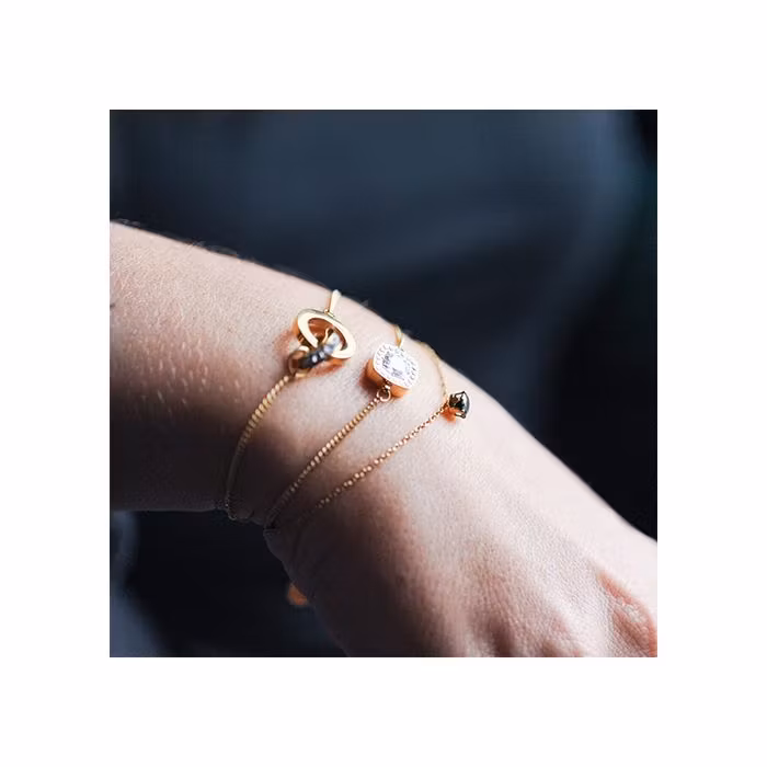Ida, en av vår klassiker, har fått en elegant uppdatering. Här ser vi Ida mini armband med en ny fin kedja som håller Idas fina små ringar, här med klara stenar i blank 14K guldplätering. Ida armband är också fint i kombination med andra armband från Edblad.